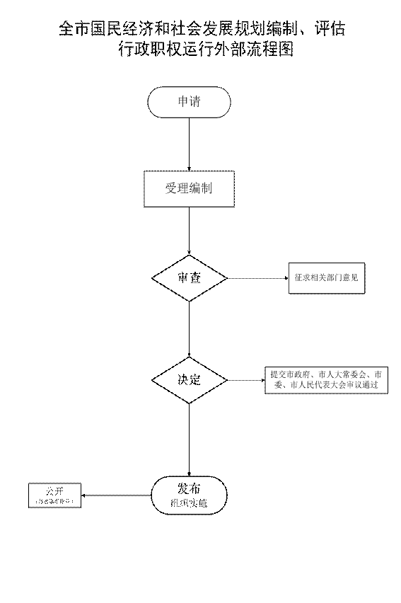 职权运行流程 | 申请→受理→审查编制→决定→报市政府、市人大常委会、市委、市人民代表大会通过→下达实施 |